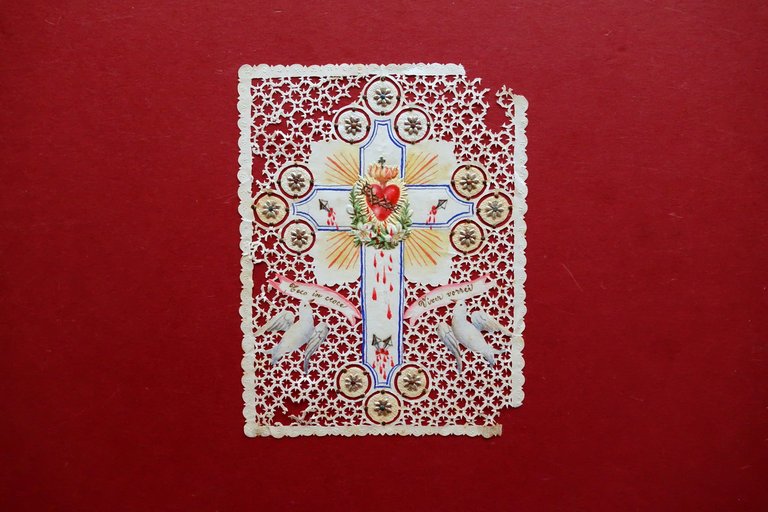 Santino Traforato Teco in Croce Viver Vorrei Realizzato a Mano Met‡ '800