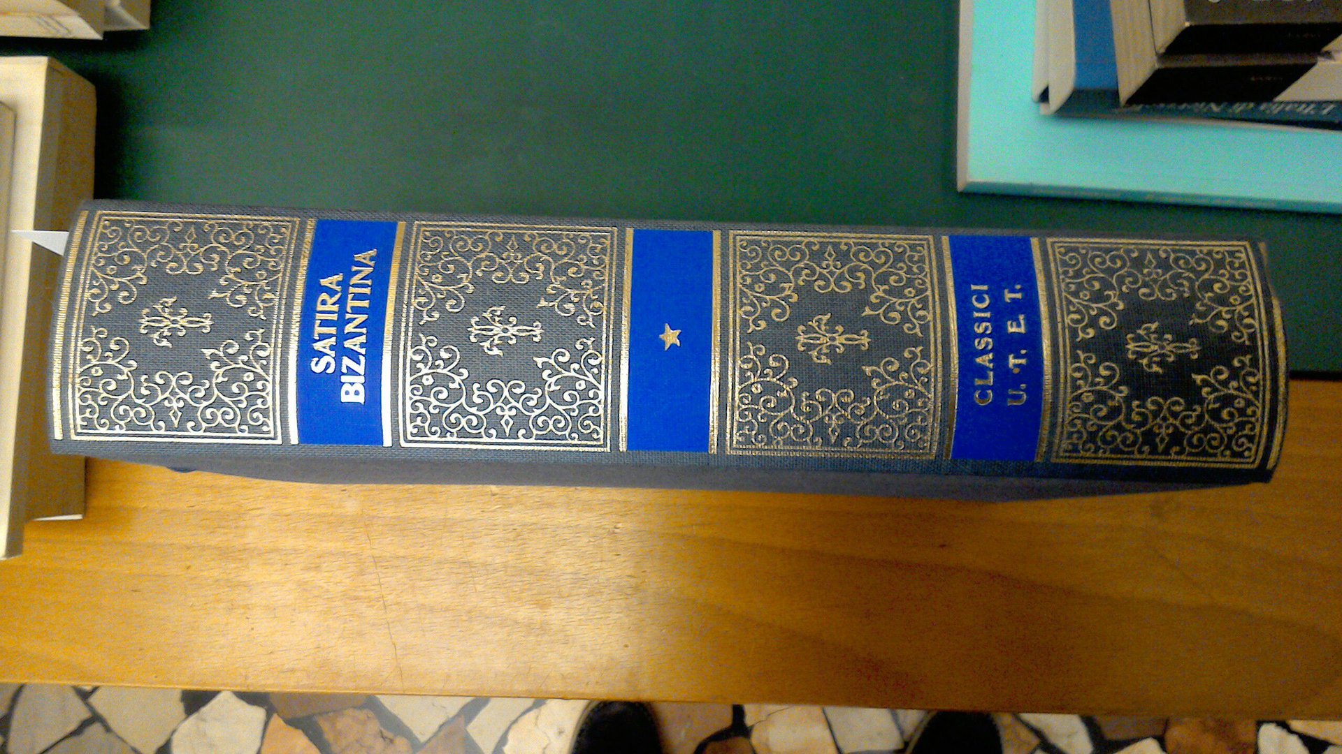 - rilegatura in tela blu, fregi e titoli in oro sul dorso, testo greco a fronte