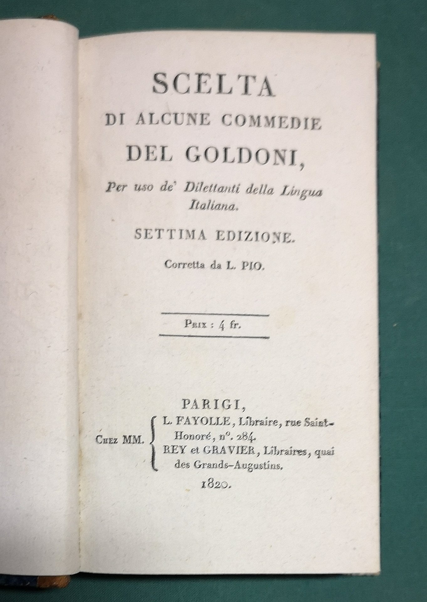 Scelta di alcune Commedie del Goldoni, Per uso de' dilettanti della lingua italiana. Settima edizione corretta da L. Pio