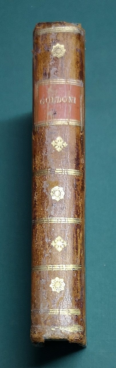 >in-16., XII, 490 pp., leg. coeva in mezza pelle con filetti dor. e tassello al dorso. Sei commedie in tre atti in prosa (Pamela; Il vero amico; L'avventuriere onorato; La villeggiatura; Il burbero benefico o sia il bisbetico di buon cuore; Il raggiratore) precedute da alcune notizie sulla vita e le opere del Goldoni . Buon esempl.