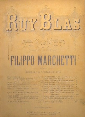 Dall'Opera Ruy Blas ( dramma lirico in 4 atti ) - in 4° - pp.9 - Brossura editoriale illustrata - Partitura per Pianoforte