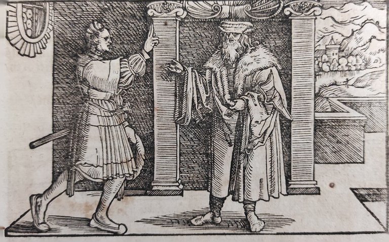 Hans Weiditz è considerato uno dei maestri della xilografia rinascimentale tedesca, insieme a Holbein,  Burgkmair e naturalmente Albrecht Dürer. Viene indicato come  "Il Maestro Petrarca" in ragione delle oltre 250 illustrazioni xilografiche da lui realizzate per il De Remediis Utriusque Fortunae di Petrarca.Quella qui proposta è una delle incisioni appartenenti a questa suggestiva raccolta. xilografia cm. 10,3 x 16,3 Buono (Good) Buon es., leggere macchie del tempo.