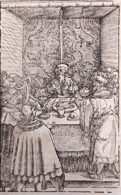 Hans Weiditz è considerato uno dei maestri della xilografia rinascimentale tedesca, insieme a Holbein, Burgkmair e naturalmente Albrecht Dürer. Viene indicato come "Il Maestro Petrarca" in ragione delle oltre 250 illustrazioni xilografiche da lui realizzate per il De Remediis Utriusque Fortunae di Petrarca.Quella qui proposta è una delle incisioni appartenenti a questa suggestiva raccolta. xilografia cm. 16,3 x 10 Buono (Good) Buon es., leggere macchie del tempo.