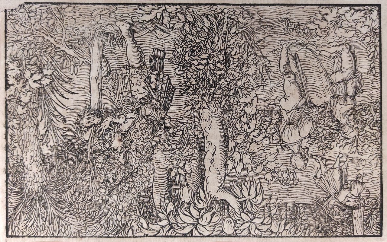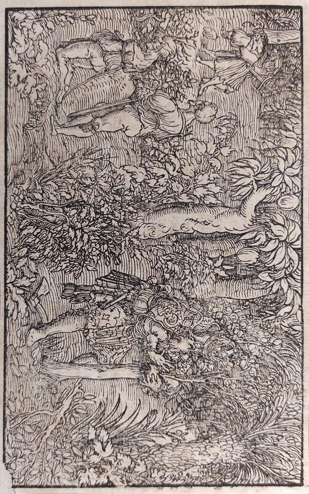 Hans Weiditz è considerato uno dei maestri della xilografia rinascimentale tedesca, insieme a Holbein, Burgkmair e naturalmente Albrecht Dürer. Viene indicato come "Il Maestro Petrarca" in ragione delle oltre 250 illustrazioni xilografiche da lui realizzate per il De Remediis Utriusque Fortunae di Petrarca.Quella qui proposta è una delle incisioni appartenenti a questa suggestiva raccolta. xilografia cm. 10,1 x 16,1 Buono (Good) Buon es., leggere macchie del tempo, mancanza in basso a destra.