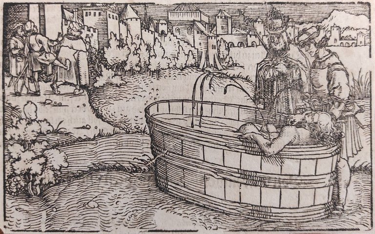 Hans Weiditz è considerato uno dei maestri della xilografia rinascimentale tedesca, insieme a Holbein,  Burgkmair e naturalmente Albrecht Dürer. Viene indicato come  "Il Maestro Petrarca" in ragione delle oltre 250 illustrazioni xilografiche da lui realizzate per il De Remediis Utriusque Fortunae di Petrarca.Quella qui proposta è una delle incisioni appartenenti a questa suggestiva raccolta. xilografia cm. 10,2 x 15,8 Buono (Good) Buon es..
