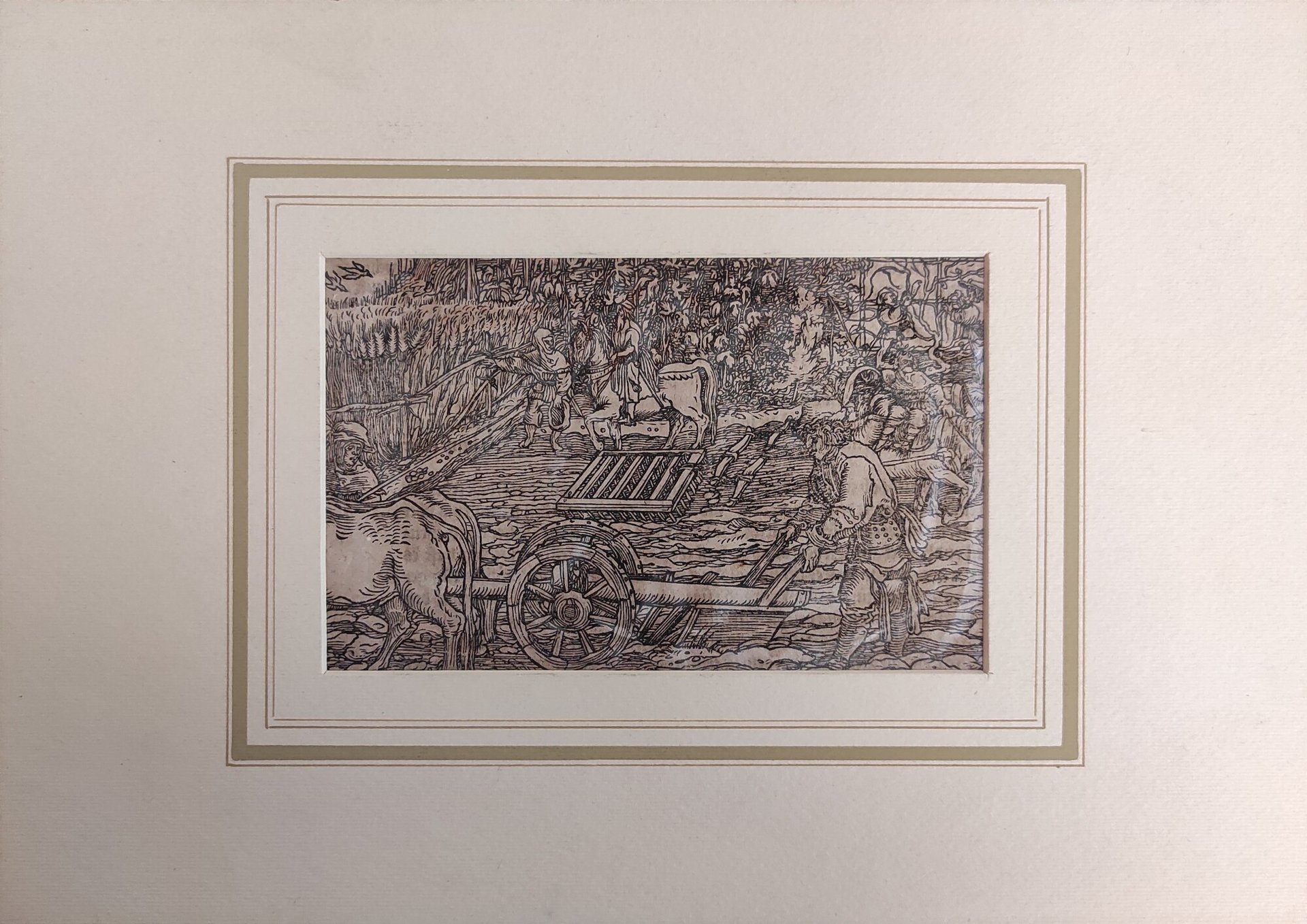 Hans Weiditz è considerato uno dei maestri della xilografia rinascimentale tedesca, insieme a Holbein, Burgkmair e naturalmente Albrecht Dürer. Viene indicato come "Il Maestro Petrarca" in ragione delle oltre 250 illustrazioni xilografiche da lui realizzate per il De Remediis Utriusque Fortunae di Petrarca.Quella qui proposta è una delle incisioni appartenenti a questa suggestiva raccolta. xilografia cm. 10,2 x 16 Buono (Good) Buon es., leggere macchie del tempo.