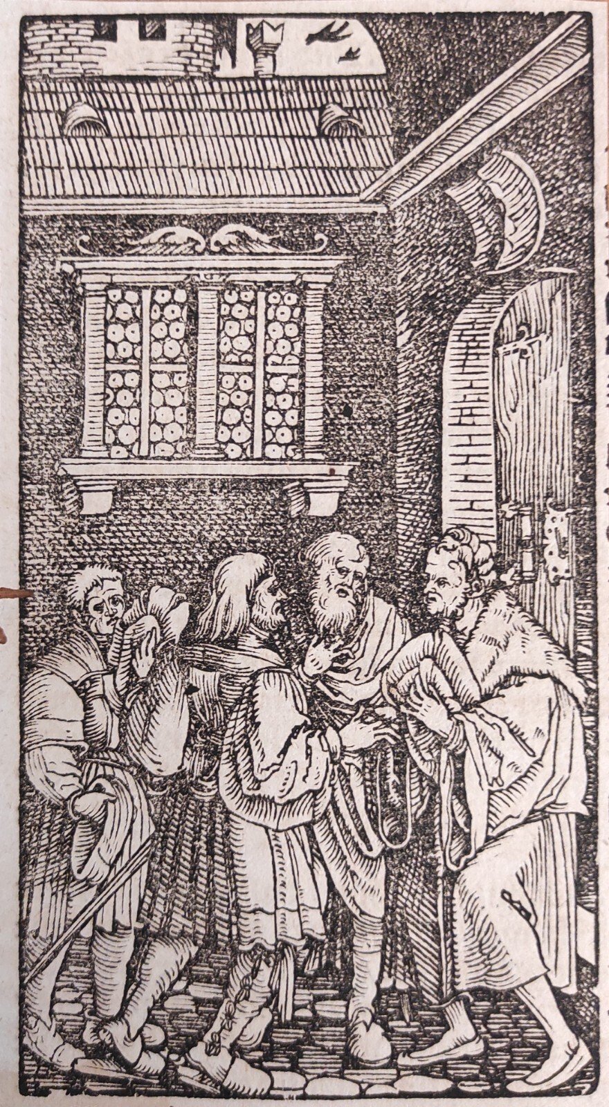 Hans Weiditz è considerato uno dei maestri della xilografia rinascimentale tedesca, insieme a Holbein, Burgkmair e naturalmente Albrecht Dürer. Viene indicato come "Il Maestro Petrarca" in ragione delle oltre 250 illustrazioni xilografiche da lui realizzate per il De Remediis Utriusque Fortunae di Petrarca.Quella qui proposta è una delle incisioni appartenenti a questa suggestiva raccolta. xilografia cm. 8,8 x 16,2 Buono (Good) Buon es., fori sul lato sinistro.