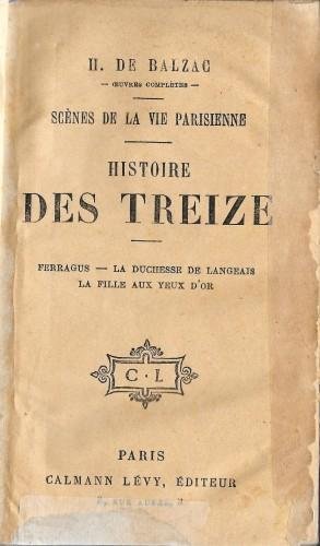 in 16°, pp. 347, leg. coeva m/tela con tit. in oro al ds. Ferragus - La Duchesse de Langeais - La fille aux yeux d'or. Piccole mancanze riparate al margine inf. delle prime 2 pp. senza perdita di testo. Buono. 107-39
