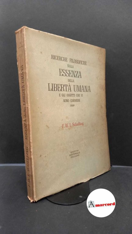 Schelling, Friedrich Wilhelm Joseph : von. Ricerche filosofiche sulla essenza della libertà umana e gli oggetti che vi sono connessi : 1809. Milano Istituto editoriale italiano, 1947
