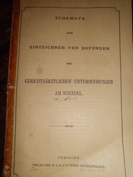 Tubingen, H. Laupp'schen Buchhandlung, 1883. In-8°, br., cop. orig. e 43 tavole monocrome illustranti i diversi aspetti del cranio umano.