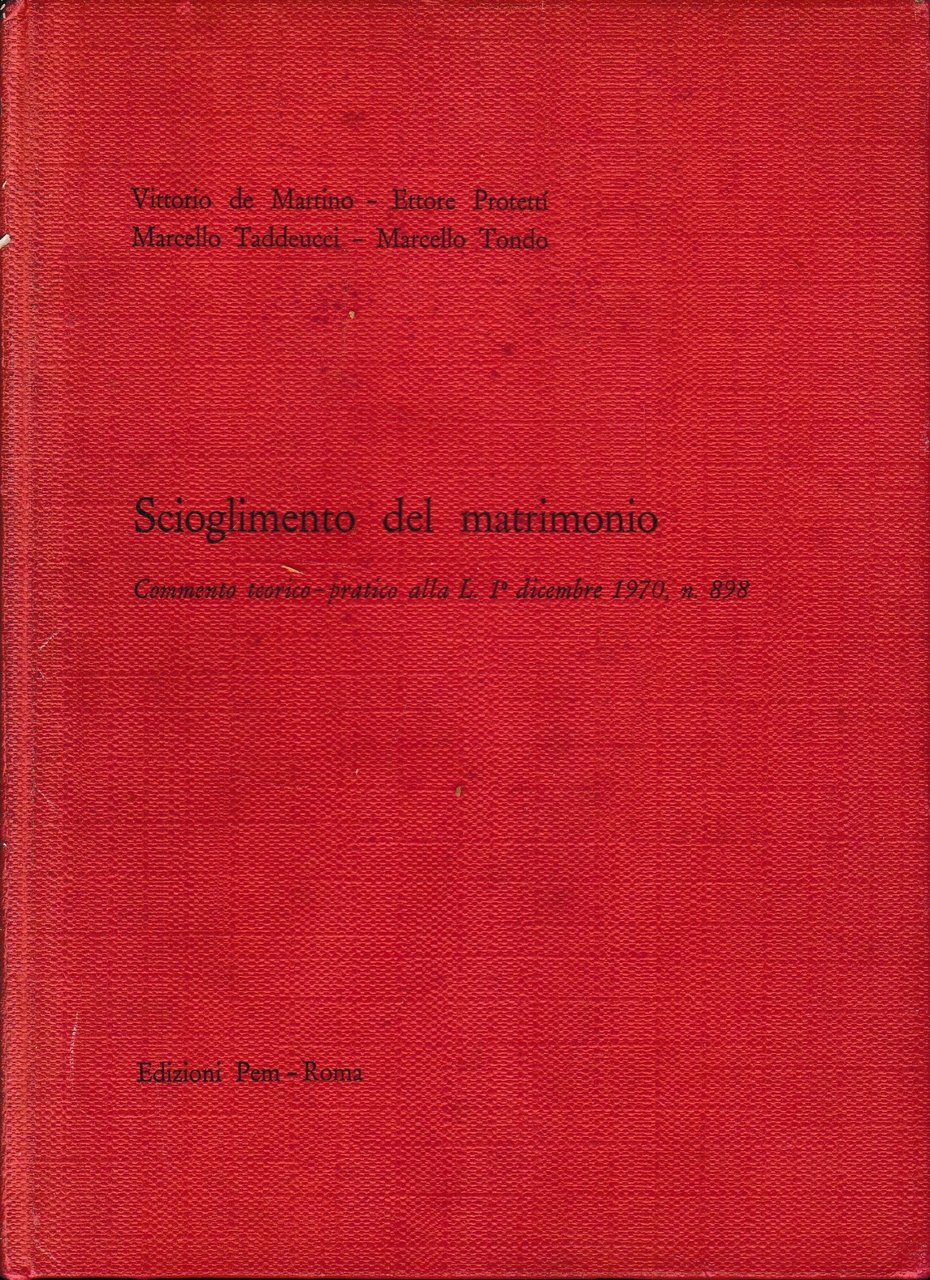 Scioglimento del matrimonio. Commento teorico-pratico alla L. 1^ dicembre 1970, n. 898