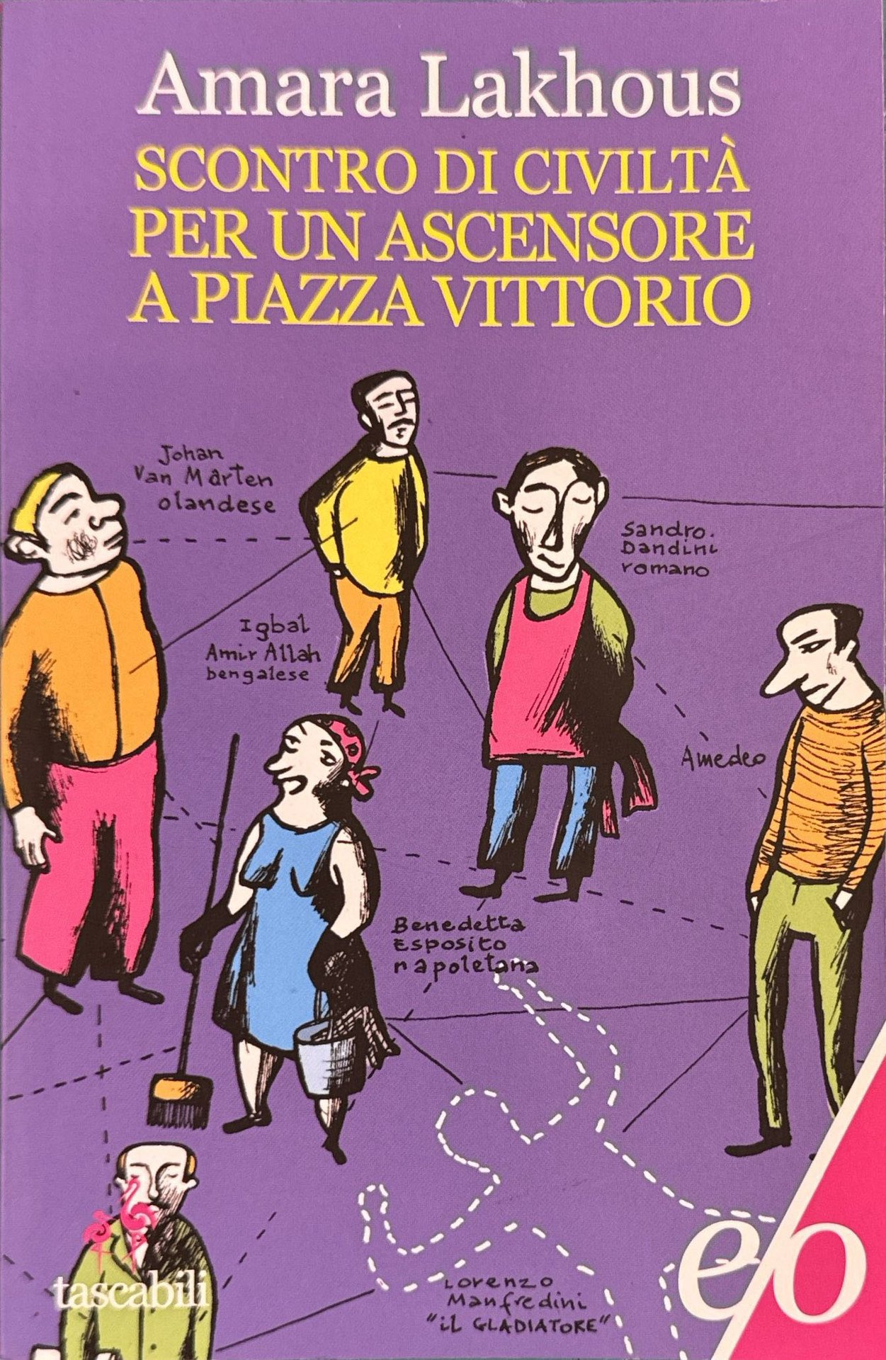 Omicidio a piazza Vittorio: una commedia all'italiana scritta da un autore di origine algerina. Questo romanzo di Amara Lakhous è una sapiente e irresistibile miscela di satira di costume e romanzo giallo imperniata su una scoppiettante polifonia dialettale di gaddiana memoria (il "Pasticciaccio" sta sullo sfondo segreto della scena come un nume tutelare). La piccola folla multiculturale che anima le vicende di uno stabile a piazza Vittorio sorprende per la verità e la precisione dell'analisi antropologica, il brio e l'apparente leggerezza del racconto. A partire dall'omicidio di un losco personaggio soprannominato "il Gladiatore", si snoda un'indagine che ci consente di penetrare nell'universo del più multietnico dei quartieri di Roma: piazza Vittorio. Forse basta mettere in scena frammenti di vita quotidiana intrecciati attorno all'ascensore, puntualmente all'origine di tante dispute condominiali, per comprendere il nodo focale del paventato, discusso, negato o invocato scontro di civiltà che assilla il nostro presente e il nostro futuro e infiamma il dibattito politico, sociale e religioso-culturale dei nostri giorni.