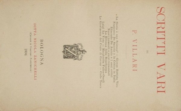 in 16° - pp.530 - Mezza tela dorso con titolo in oro - La Storia è una Scienza? - Giovan Battista Vico - Francesco De Sanctis e la Critica in Italia - Edmondo De Amicis e i suoi critici - Nuovi tormenti e nuovi tormentati - La Riforma della Beneficenza - Luigi La Vista - Margherita Fuller-Ossoli - La Giovinezza del Conte di Cavour - Carlo Tenca