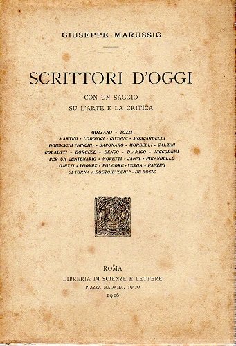 SCRITTORI D' OGGI CON UN SAGGIO SU L'ARTE E LA CRITICA