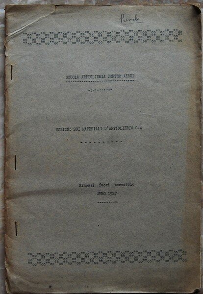 SCUOLA ARTIGLIERIA CONTRO AEREI. NOZIONI SUI MATERIALI D'ARTIGLIERIA C.A.