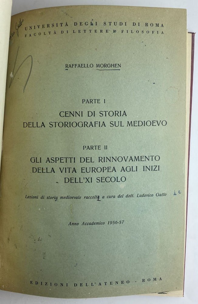 Segni di storia sulla storiografia del medioevo. Gli aspetti del rinnovamento della vita europea agli inizi dell'XI secolo. Copertina rigida leggermente ombrata presenta lievi segni d'uso ai margini, taglio regolare imbrunito, pagine pulite imbrunite, nel frontespizio è presente una firma e dei segni a matita Copertina rigida 317 Buono (Good) .