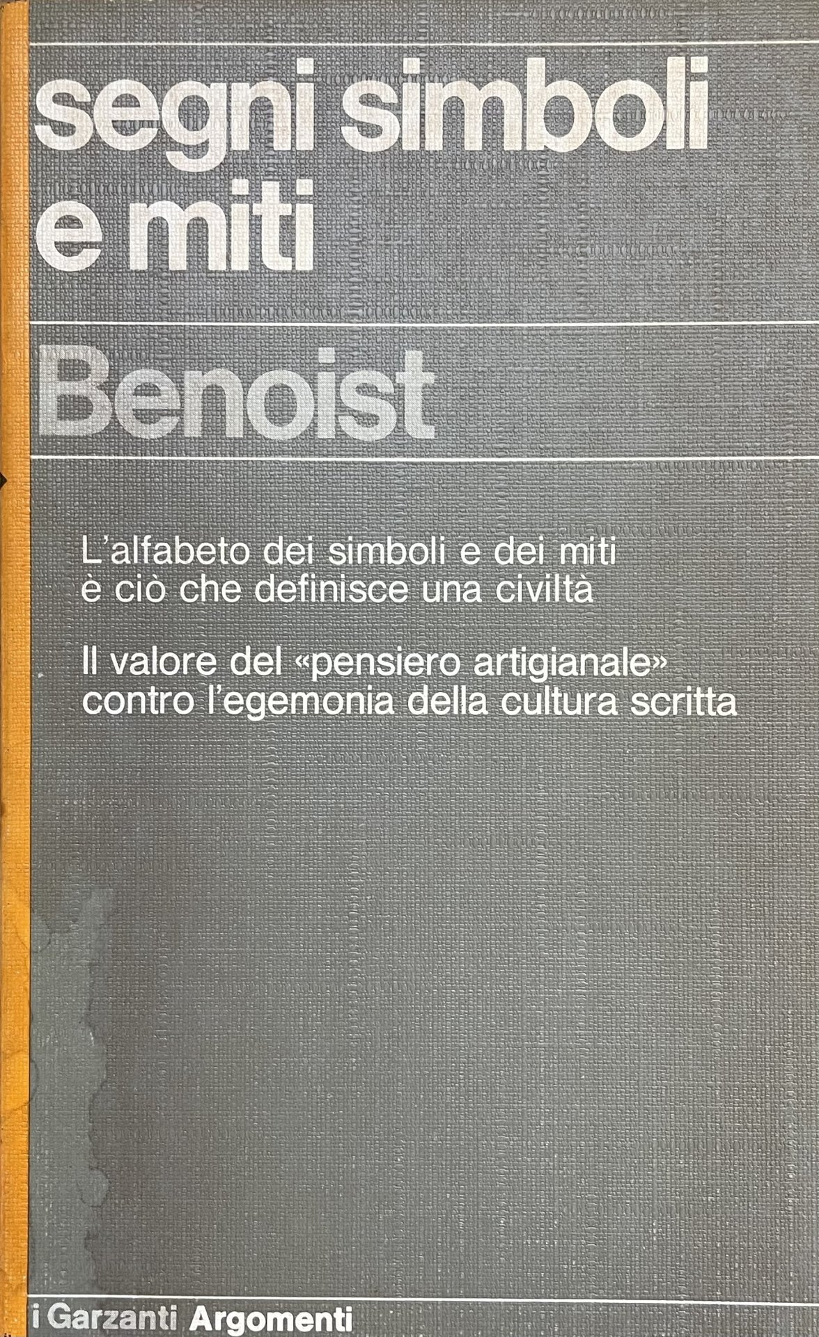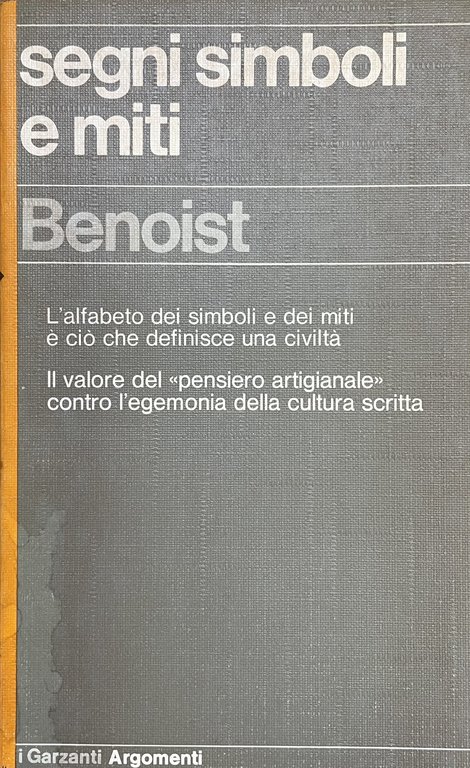 "L'alfabeto dei simboli e dei miti è ciò che definisce una civiltà. Il valore del «pensiero artigianale» contro l'egemonia della cultura scritta" in ottavo leg. bross. pp. 124 Buono (Good) Buon es..