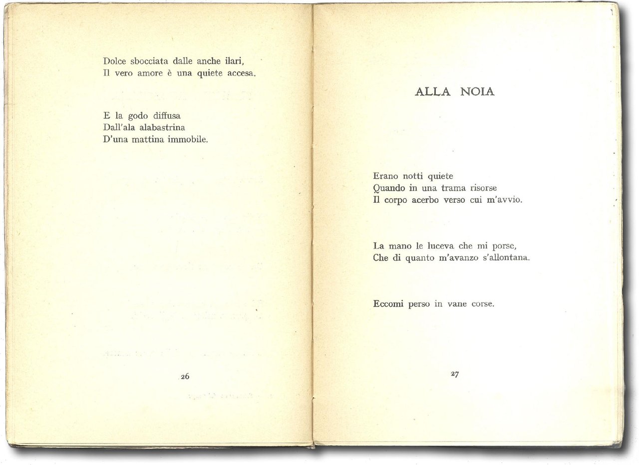 >in-16, pp. 170, (2), broch. edit. fig. Edizione originale in volume. Le prime composizioni erano già apparse su «L'Italia letteraria» e «Commerce». Con questa seconda grande opera Ungaretti si riavvicinò alla tradizione poetica italiana di Petrarca e Leopardi. Perfetto esemplare. ASOR ROSA, p. 555. SPADUCCI p. 297.