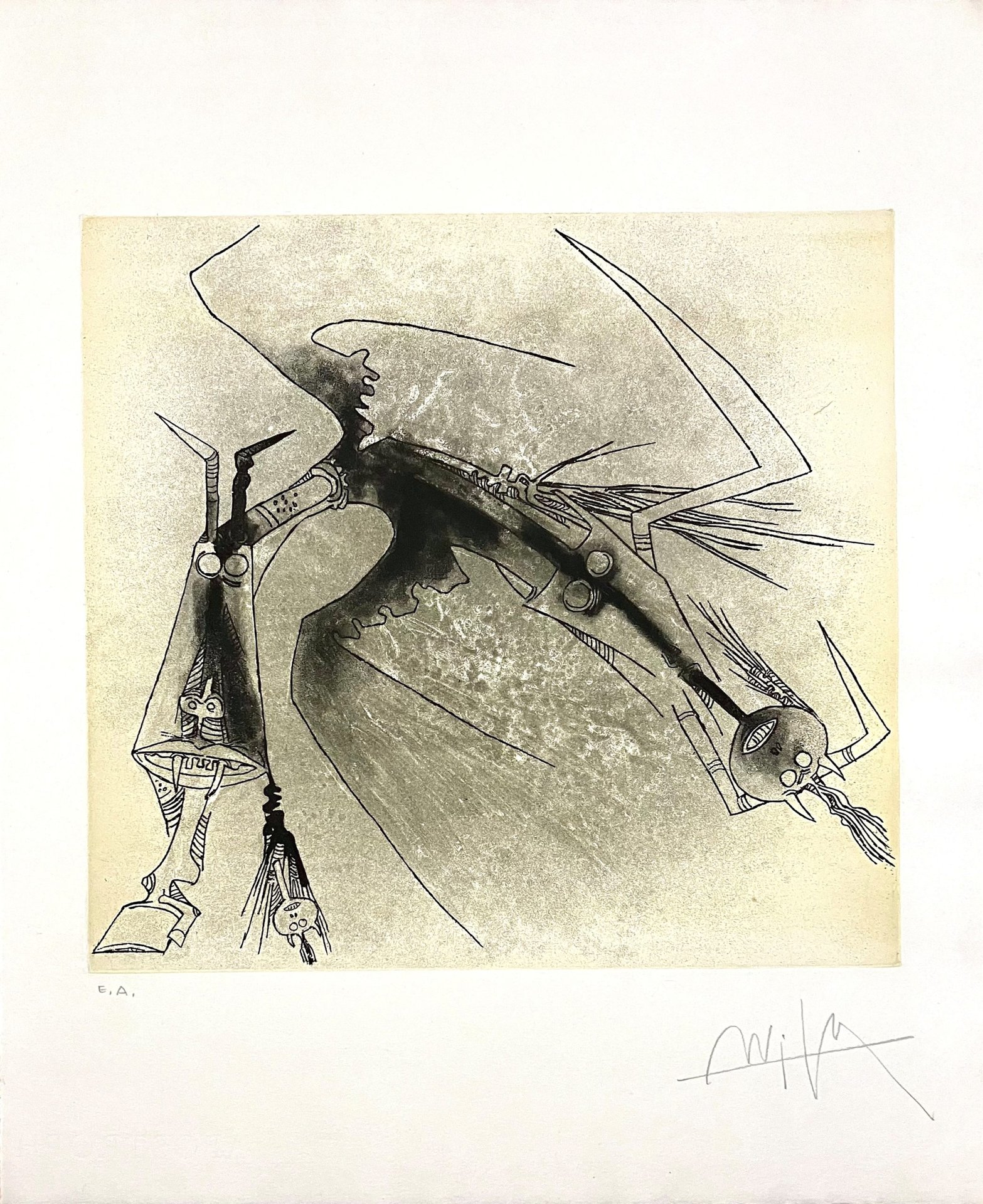 Acquaforte, prova d'artista, dal volume "Apostroph' Apocalypse" di Luca Gherasim (titolo in filigrana), firma dell'artista a matita. € 450,00