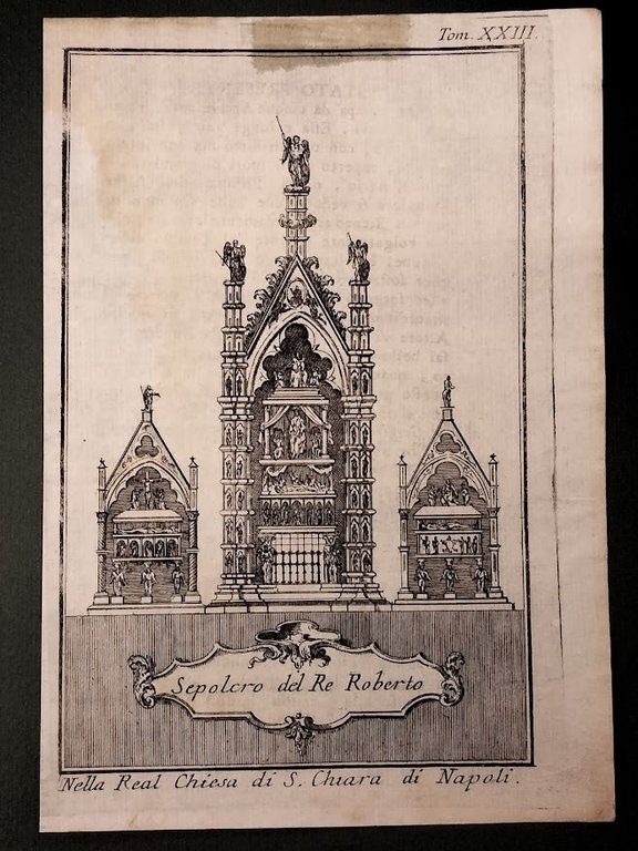 SEPOLCRO DEL RE ROBERTO, NELLA REAL CHIESA S. CHIARA DI NAPOLI. Lo stato presente di tutti i paesi e popoli del mondo naturale, politico e morale con nuove osservazioni e correzioni degli antichi e moderni viaggiatori.