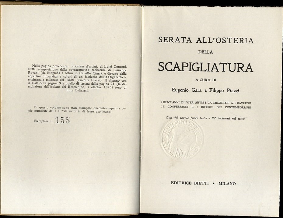 Serata all'osteria della Scapigliatura. Trent'anni di vita artistica milanese attraverso le confessioni e i ricordi dei contemporanei.