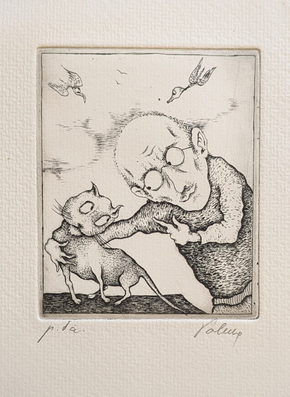 Stampato in 1000 copie, cinquanta esemplari con un'acquaforte originale. Esemplare n. 535 4 ill. dell'Autore in bianco e nero f.t., 1 acquaforte f.t. in sedicesimo leg. bross. con sovracc. pp. 64 Molto buono (Very Good) Es. molto buono.