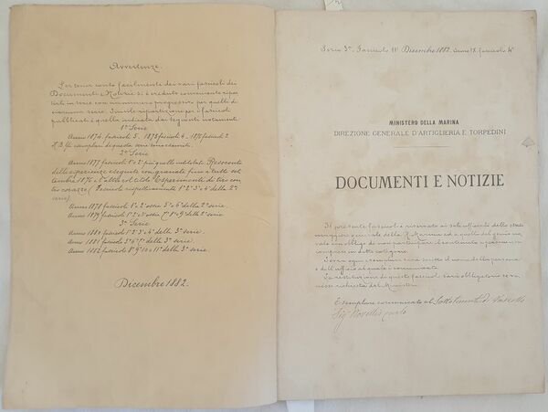 Rara raccolta di appunti editi dal Ministero della Marina sui trasporti pr mare e sbarchi di truppe. Questa copia litografata di appunti manoscritti era parte dellle manualistica che ogni ufficiale della Marina doveva avere e faceva parte dell'archivio di ogni nave. Ogni copia riporta la firma del proprietario che lo aveva in carico. All'interno: Studio sulle operazioni combinate terrestri e marittime, Imbarco e sbarco di un corpo di spedizione senza combattimento, Mezzi di trasporto, Lista della flotta di trasporto, Forza e composizione del corpo di spedizione, Imbarcoe ripartizione delle truppe sui trasporti composizione del convoglio, Sistemazione e servizio delle truppe a bordo delle navi da trasporto, Navigazione e protezione del convoglio, materiale impiegato per gli sbarchi piatte, imbarcazioni, Riconoscimento delle spiaggia e coste nemichesbarco delle truppe, Campo trincerato installazioni diverse v3ettovagliamento rinforzi, sbarchi di viva forza, trasporti scuderia, ventilazione, traversata, imbarco dei cavalli, pulizia e servizi di stalla, sorveglianza delle somministrazioni, ispezione finale, mezzi delel diverse nazioni, tempo per preparare le truppe e le navi, palischermi ecc. Il contenuto era riservato ai componenti della Marina e al Governo. Alcune illustrazioni. In buone condizioni. Copertina editoriale in buone condizioni generali con lievi usure ai margini e dorso. Gore marginali. Legatura in buone condizioni. Pagine in buone condizioni con fioriture. In folio. cm 34,5x24. Pp. 227.Scarce collection of notes edited by Ministero della Marina about transport via sea and troops. This lythographed copy of handwritten notes was part of the manuals each officier of Marinee should have and belonged to the archive of the ship and was considered reserved. Each copy has the signature of the owner. Some illustrations. In good conditions. Editorial cover in good conditions lightly worn in the extremities. Dump stains in the extremities. Binding in good conditions. Pages in good conditions with foxing. In folio. cm 34,5x24. Pp. 227.