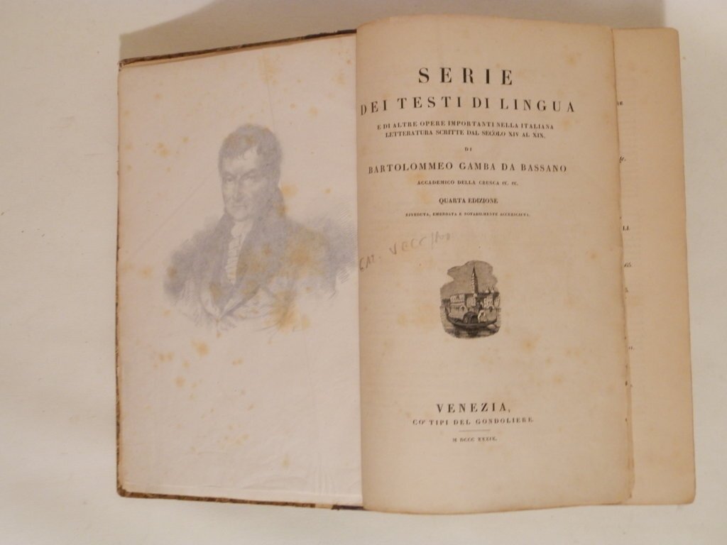 4°, cm 27, pp. XXV, 794, con rittratto dell'autore inciso all'antiporta e protetto da velina. Legatura in mezza tela con piatti in carta marmorizzata. Fioriture al frontespizio, peraltro esemplare molto genuino e ben conservato. Carta di guardia finale rinnovata. Quarta edizione, la più completa, della principale bibliografia per i testi antichi di letteratura italiana.. *** TUTTI I NOSTRI LIBRI SONO VISIBILI PREVIO CONTATTO MAIL O TELEFONO NELLA NUOVA SEDE DI MILANO: LIBRERIA COSMOPOLIS, VIA JOMMELLI, 22. ***