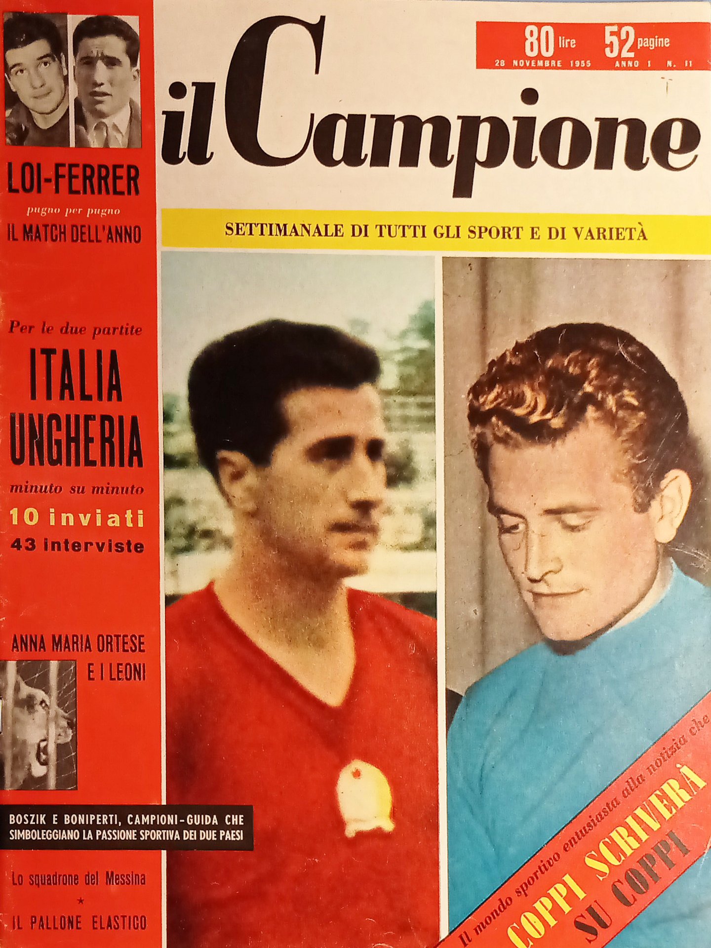 Settimanale - Il Campione N. 11 - Giampiero Boniperti e József Bozsik - 1955