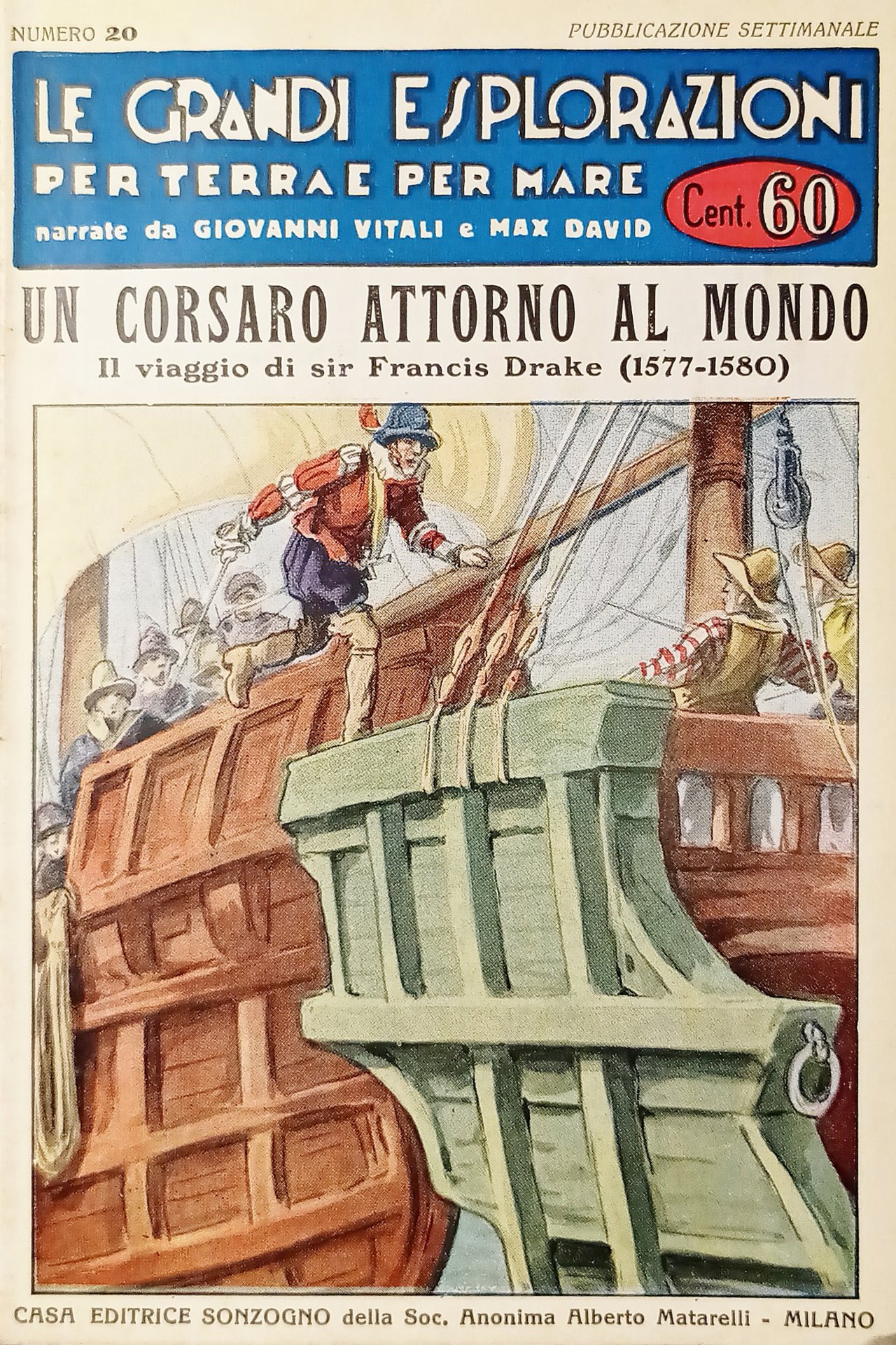 Settimanale - Le Grandi Esplorazioni per Terra e per Mare N. 20 - 1933 Giovanni Vitali e Max David - Un Corsaro attorno al Mondo Testo in lingua italiana. Pagine 32 con illustrazioni. Copertina morbida. Condizioni molto buone con piccoli segni del tempo.