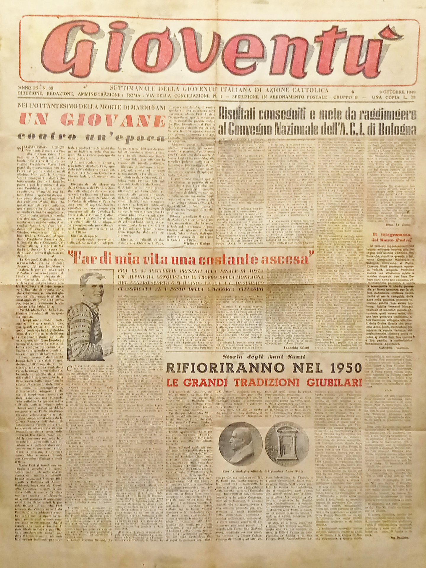 Settimanale Gioventù Italiana di Azione Cattolica - Gioventù N. 38 - 1949