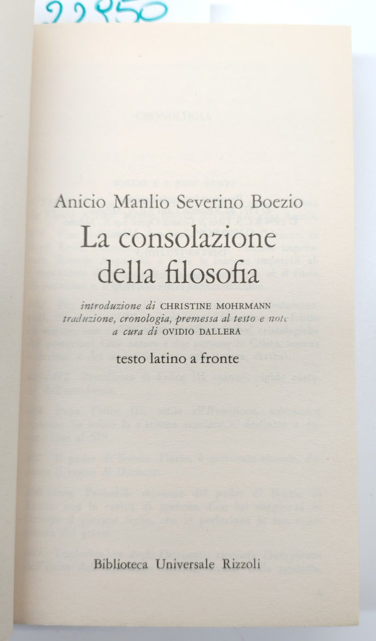Severino Boezio La consolazione della filosofia BUR Rizzoli 10° edizione 2001