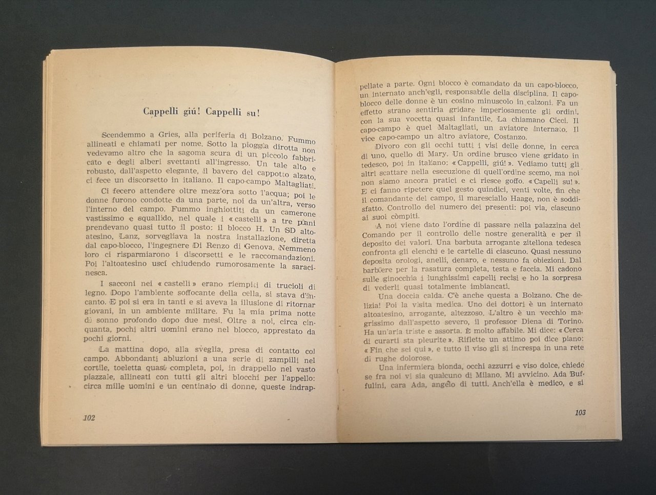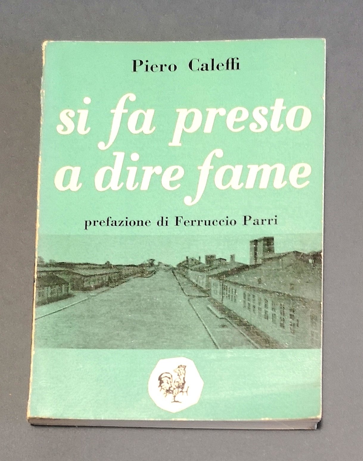 >in-16, pp. (5), broch. edit. figurata da Albe Steiner: una veduta desolata del campo di concentramento che occupa interamente copertina e retro. Edizione originale, che godette di grande fortuna e numerose ristampe. E' la storia autobiografica di Piero Caleffi, partigiano del Partito d'Azione catturato dai repubblichini nel 1944, consegnato alle SS e deportato a Mauthausen. Nel dopoguerra diventerà senatore nelle file del Partito Socialista. Ottimo esemplare (lieve strappo alla coperta).