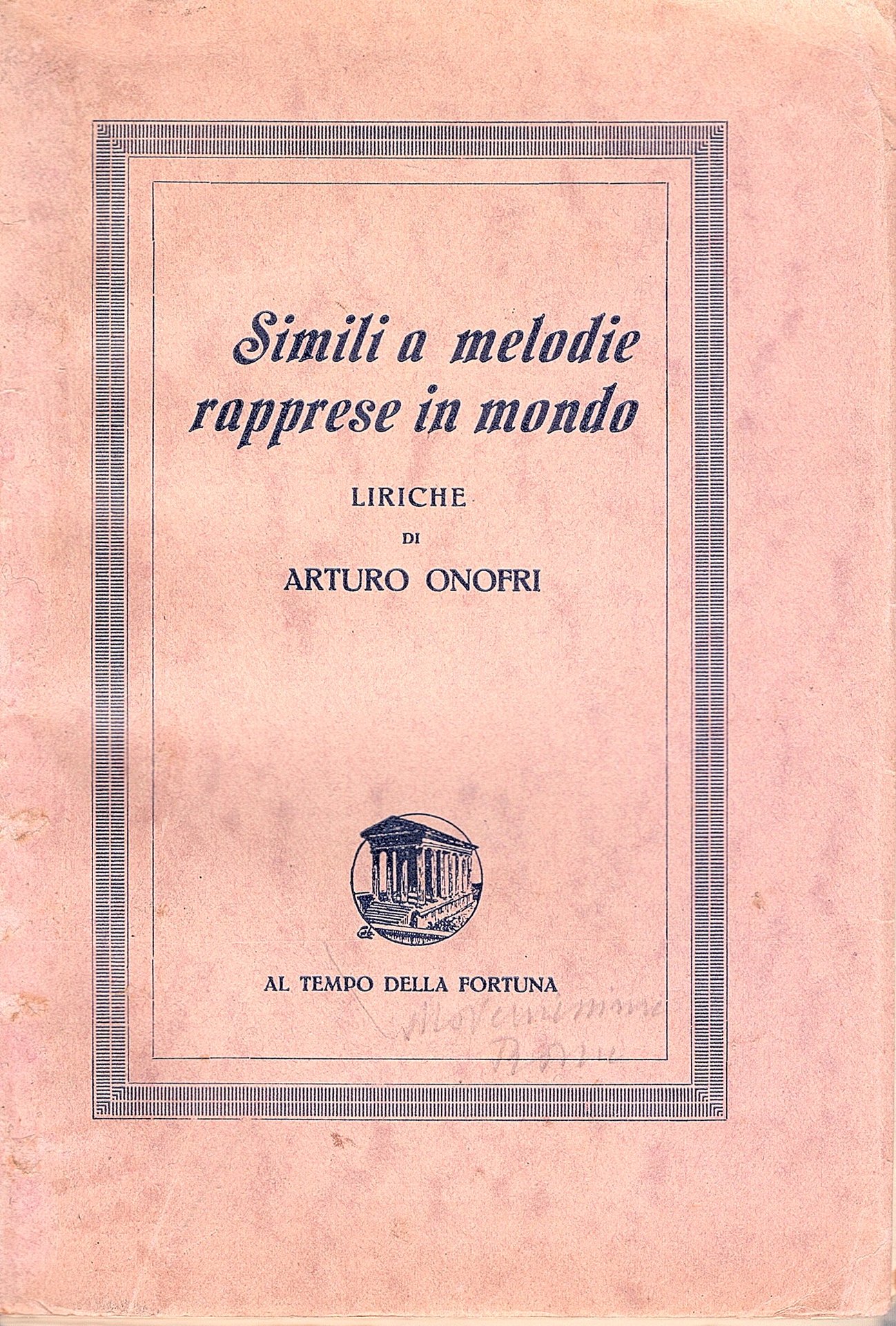 In-8° (20x14 cm), pp 72, (6), brossura editoriale seppia marmorizzata con titoli e marca tipografica in nero al piatto anteriore entro cornice. Presente il foglio di errata. Finalini figurati Ottimo esemplare a fogli chiusi entro velina con firma manoscritta della moglie dell'autore alla giustificazione di tiratura (N°122/500). Edizione originale scritta nel 1928 (ma pubblicata postuma) di questa raccolta poetica di matrice sapienziale venata di pulsioni panteistiche. Prefazione di Nicola Moscardelli. Cfr. Gambetti-Vezzosi, p. 601: ' non comune e piuttosto ricercato'.