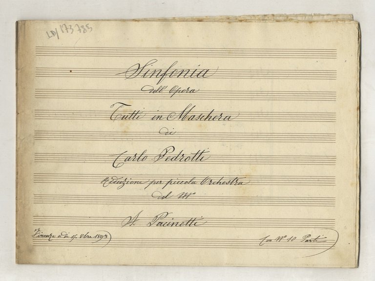 Sinfonia dell'opera "Tutti in maschera" di Carlo Pedrotti. Riduzione per piccola orchestra del m. A. Pacinotti.