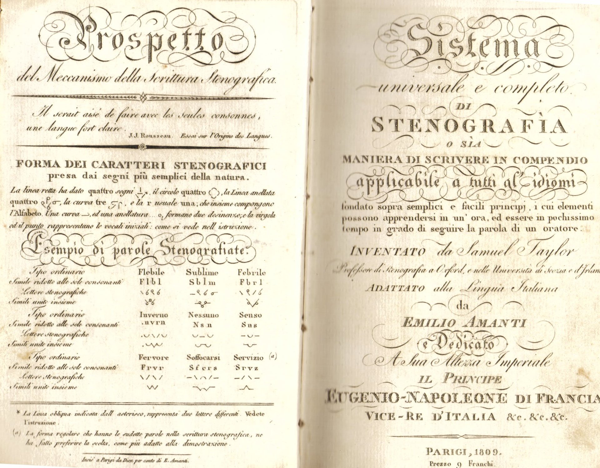 Sistema universale e completo di stenografia o sia maniera di scrivere in compendio applicabile a tutti gl'idiomi fondato sopra semplici e facili principj, i cui elementi possono apprendersi in un' ora, ed essere in pochissimo tempo in grado di seguire la parola di un oratore. Inventato da Samuel Taylor. adattato alla lingua italiana da Emilio Amanti