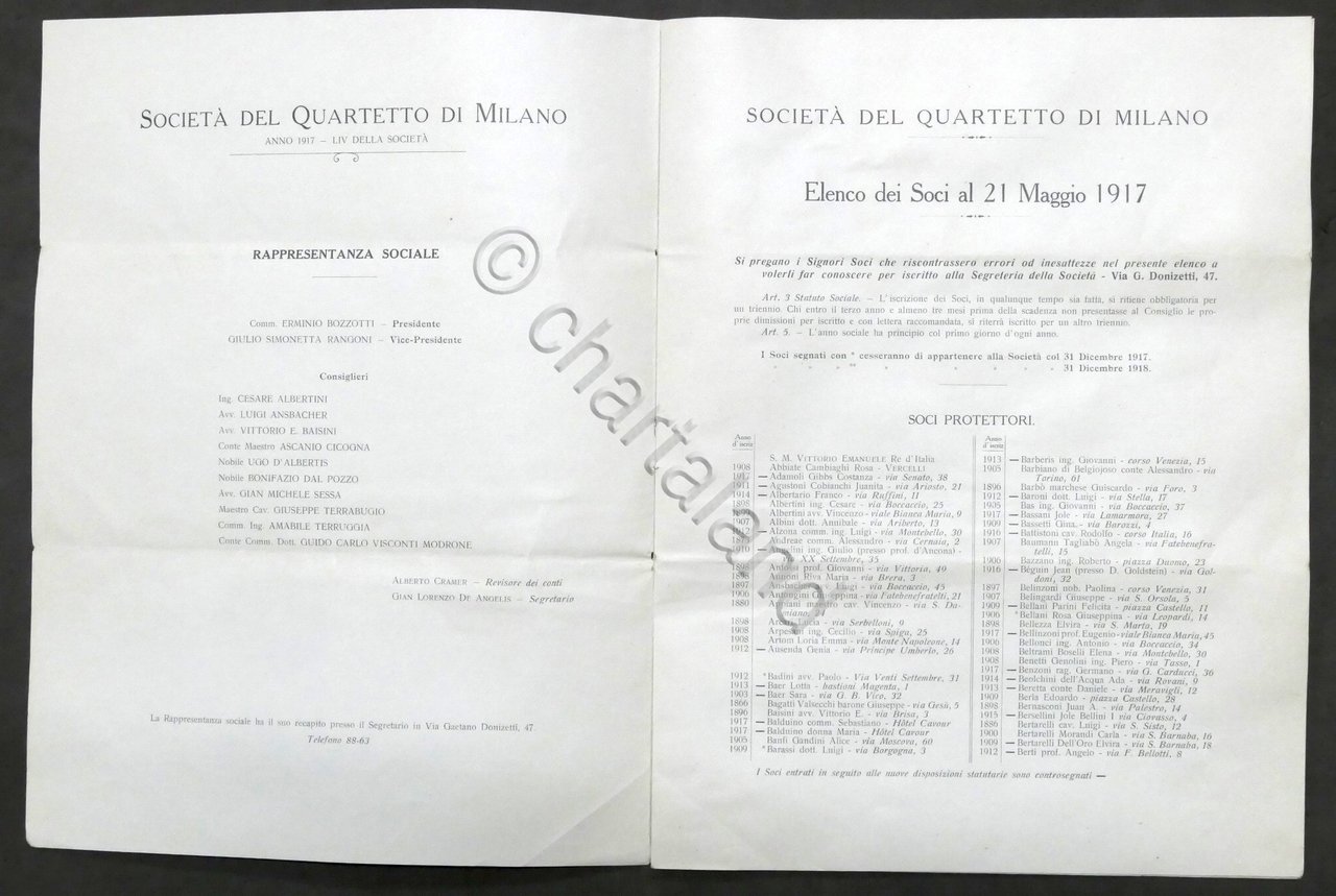 Società del quartetto di Milano - Elenco dei soci al 21 Maggio 1917