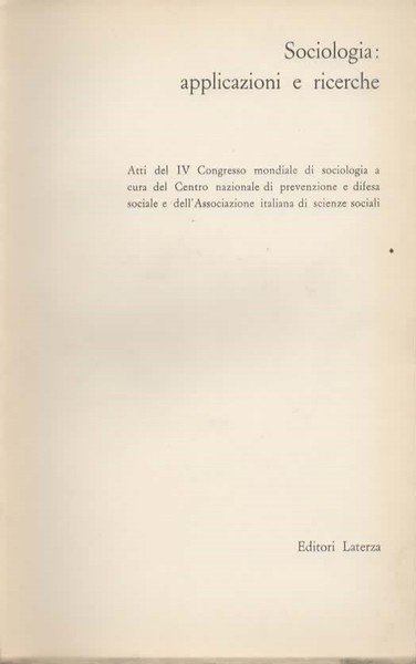 In 8°, br. edit. con sovracc. ill. (lievi fioriture e medeste tracce d'uso, strappetti), pp. 452; coll. "Biblioteca di cultura moderna 541"; atti del IV Congresso mondiale di sociologia, sporadiche sottolineature a penna nella sola seconda parte del
