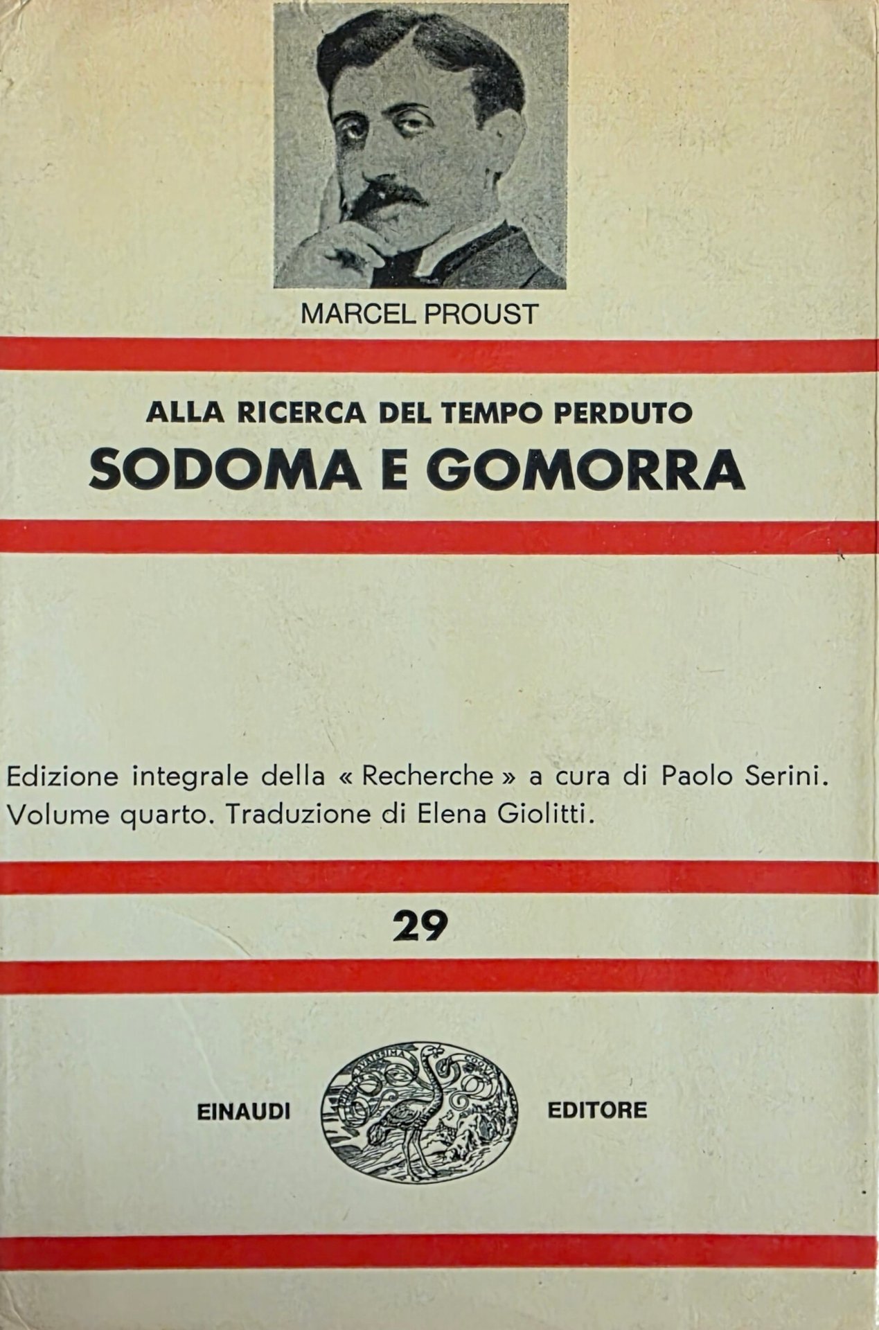 A cura di Paolo Serini. Traduzione di Elena Giolitti. È il quarto volume de "Alla ricerca del tempo perduto". in ottavo leg. cart. con sovraccoperta pp. 580 Buono (Good) Buon es., segni del tempo.