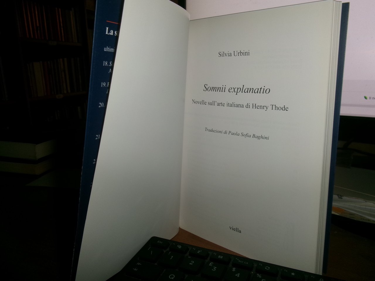 SILVIA URBINI. Roma, Viella Editrice, 2014. Somnii explanatio. Novelle sull' arte italiana di Henry Thode. In-8°, cart. edit. con risvolti. 272 pp. con numerose illustrazioni in bianco e nero. n.t. Come nuovo. Neg. mob. 14 alto.
