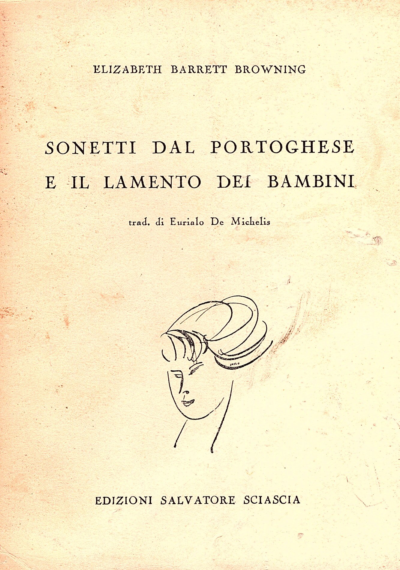 In-16° (17x13 cm), pp. 78, (2), brossura editoriale bianca figurata a risvolti paratestuali. I Quaderni di Galleria, 7. Ottimo esemplare entro velina con firma manoscritta del traduttore alla pagina di occhiello. Edizione originale. I 44 Sonnets From The Portuguese, vennero editi per la prima volta nel 1850. Di ispirazione romantica e già preludenti al Simbolismo, sono per la maggior parte dedicati al marito della scrittrice, il grande poeta inglese Robert Browning. Elizabeth Barrett Browning (1806-1861) produsse varie raccolte poetiche e da quando si stabilì in Italia descrisse anche il Risorgimento.