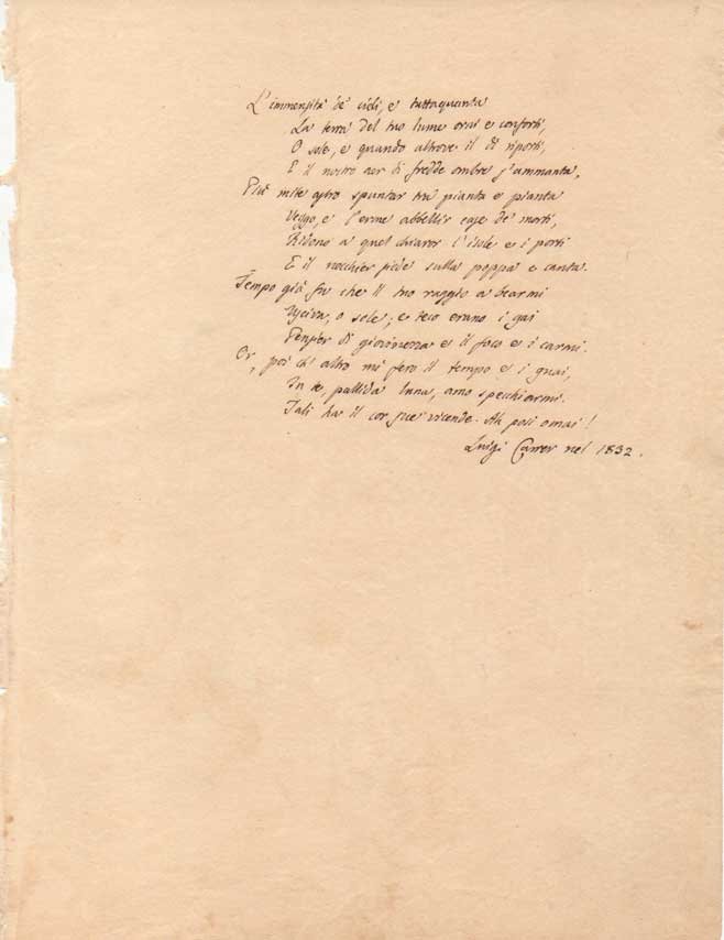 Sonetto senza titolo, firmato “Luigi Carrer”. Datato 1832