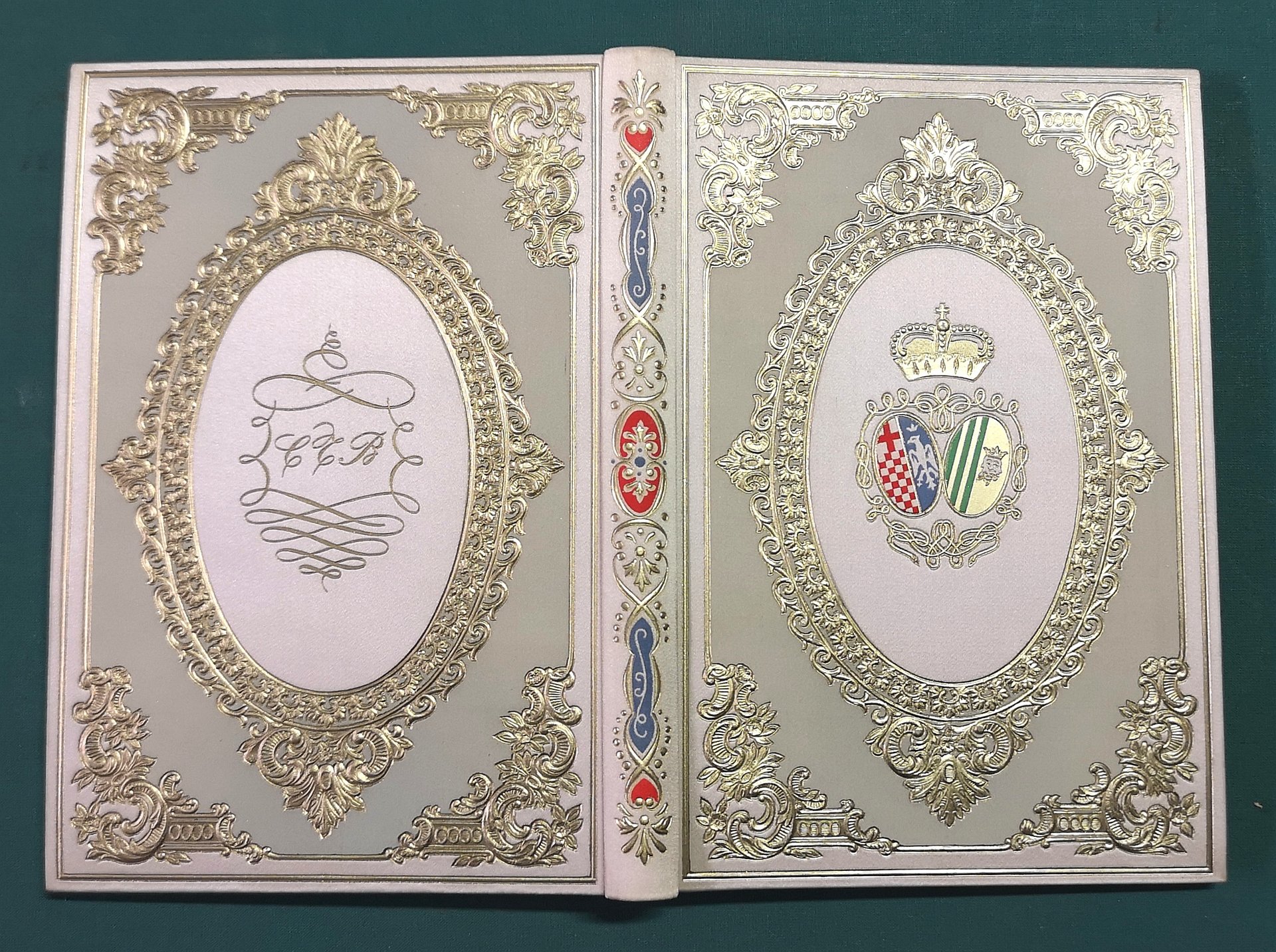 >in-8, pp. 203 (5), tavola con stemma a colori in antiporta, capilettera, fregi e tavole a colori di Renzo Sommaruga. Splendida legatura in seta seta bianca e ricchi decori in rilievo, in oro e colori, realizzata dalla ditta Torriani, tagli dorati, custodia editoriale. Edizione di pregio, su carta forte, tirata a soli 999 esemplari (ns. 123), la prima in volume, dell'epistolario di Cristina di Belgiojoso, pubblicato nel 1850 sulle pagine del giornale parigino "Le National".