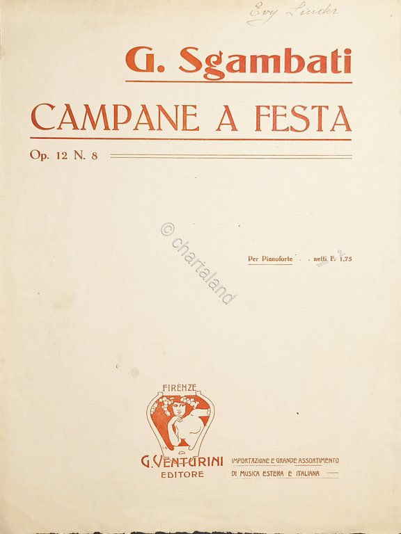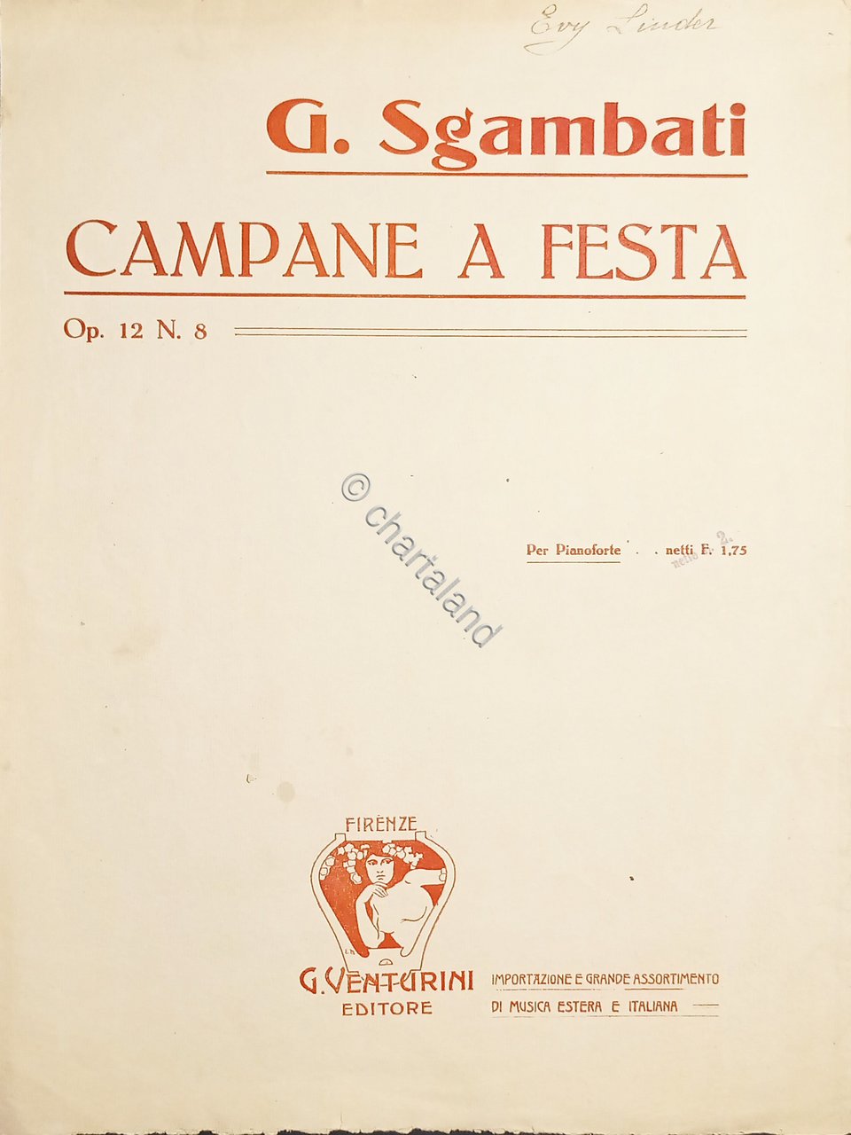 Spartiti - Campane a Festa Op. 12 N. 8 per Pianoforte di G. Sgambati Formato grande. Pagine 3 Copertina morbida Condizioni buone come da foto.