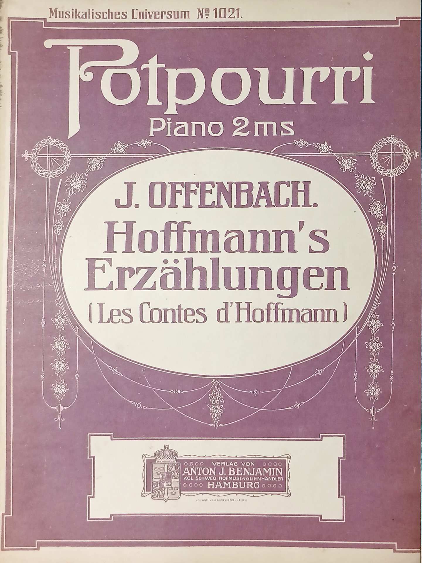 Spartiti - Hoffmanns Erzählungen - Andante Largo für Pianoforte von Offenbach Formato grande. Pagine 11 Condizioni molto buone.
