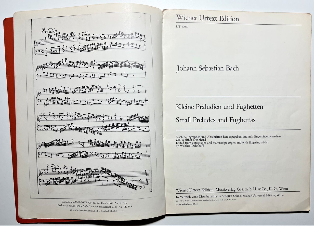 Spartiti - J. S. Bach - Kleine Präludien und Fughetten - Dehnhardt - 1973 Formato grande. Pagine 55, XXV Copertina morbida. Condizioni molto buone.