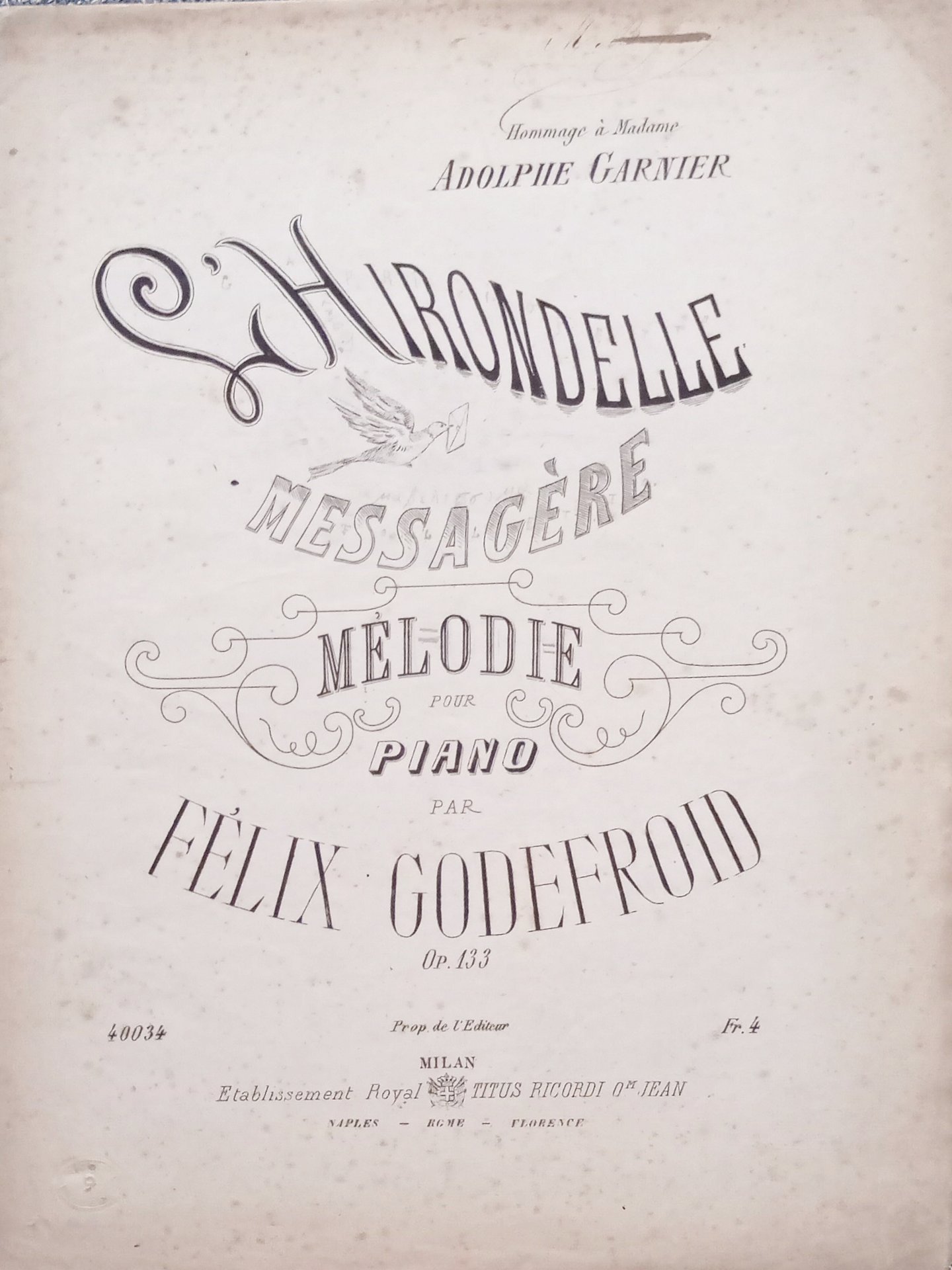 Spartiti - L'Hirondelle - Messagère - Melodie pour Piano par F. Godefroid