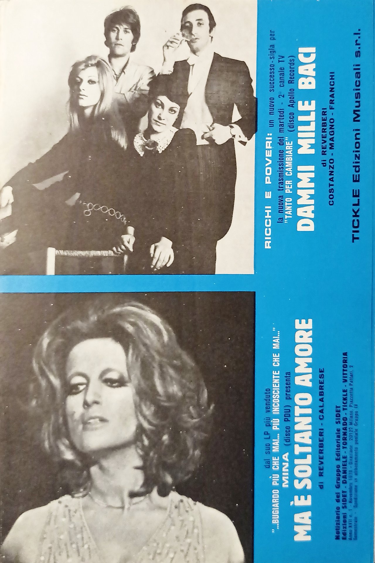 Spartiti - Ma è soltanto amore / Mina - Dammi mille baci / Ricchi e poveri 1970