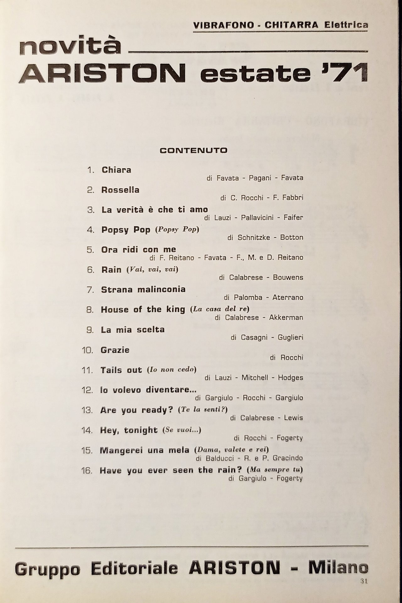 Spartiti - Novità Ariston - Estate '71 - Raccolta 1971