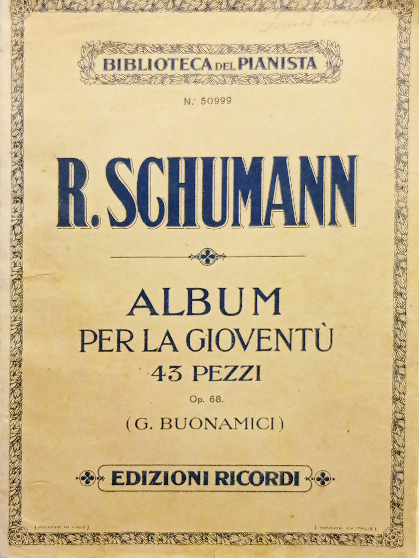 Spartiti - R. Schumann - Album per la Gioventù - 43 Pezzi - Op. 68 - Ricordi Formato grande. Pagine - 62 Condizioni buone con segni del tempo come da foto.